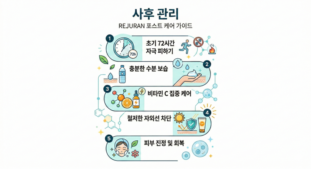- 자외선 차단: 시술 후 UV 노출은 콜라겐을 25% 더 빨리 파괴합니다. 외출 시 SPF50 이상의 자차제는 필수입니다.